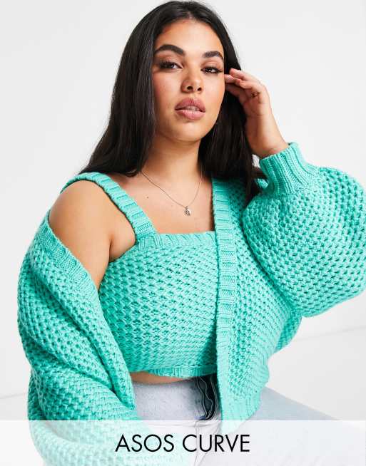 Asos Design Curve Strick Camisole In Grun Mit Waffelstich Kombiteil Asos